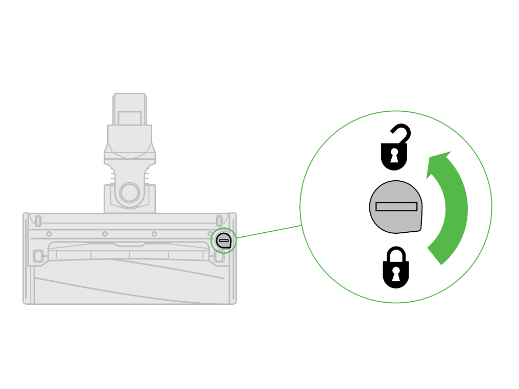 Con el cabezal separado de la máquina, gírelo y libere el seguro.