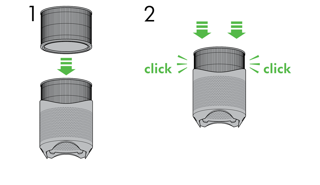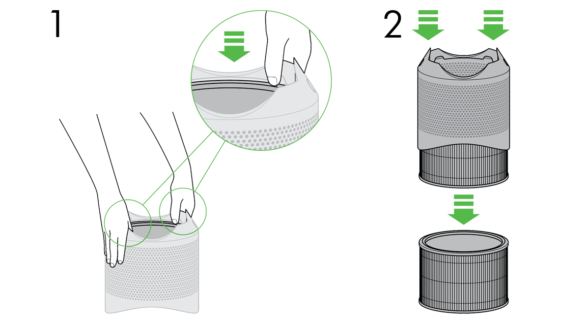 - Desliza la unidad de filtro hacia abajo en el cuerpo del purificador.