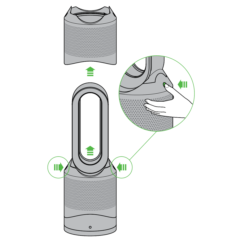 - Tu purificador Dyson está programado para recordarte reemplazar la unidad de filtro después de 12 meses basándose en un uso de 12 horas al día.