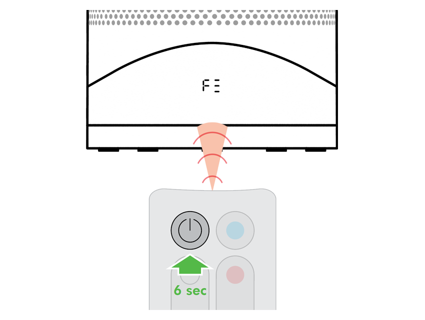 - Cuando hayas reensamblado tu purificador, presiona y sostén el botón de "Modo de espera ENCENDIDO/APAGADO" durante 6 segundos en el control remoto para reiniciar el indicador de filtro.
