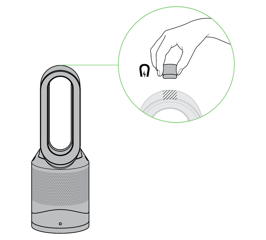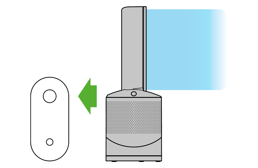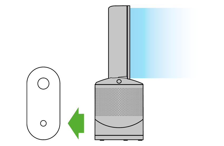 Coloca el control remoto en la parte superior del purificador Dyson con los botones viendo hacia abajo.