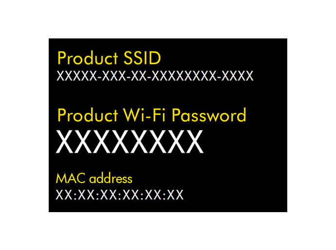 La información de Wi-Fi del producto (requerida para conectarlo) está ubicada en una etiqueta adhesiva.