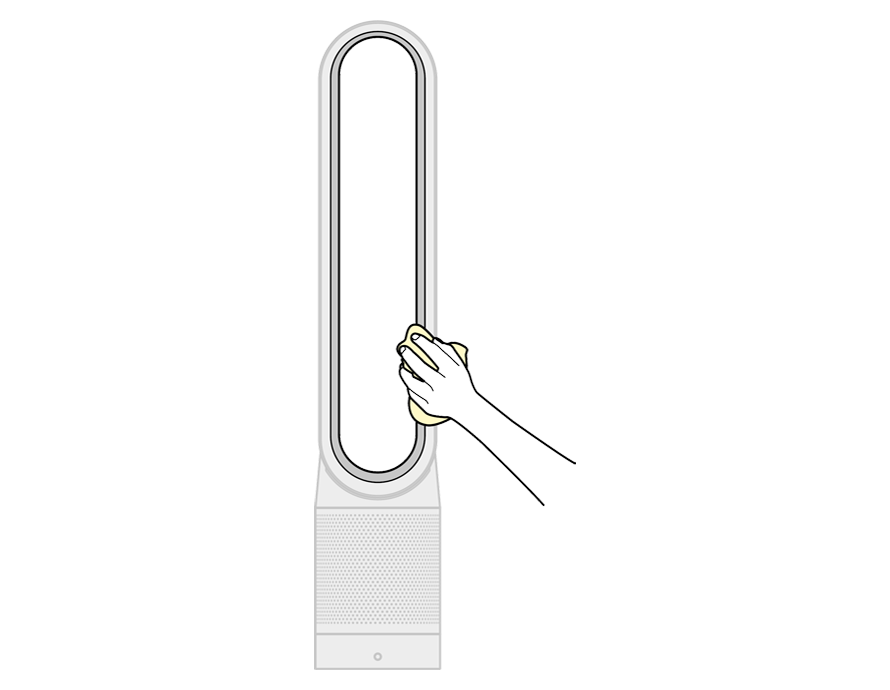 El polvo puede acumularse en la superficie del purificador. Limpia el aro, la unidad de filtro y otras partes con un paño seco o húmedo cuando se acumule polvo.