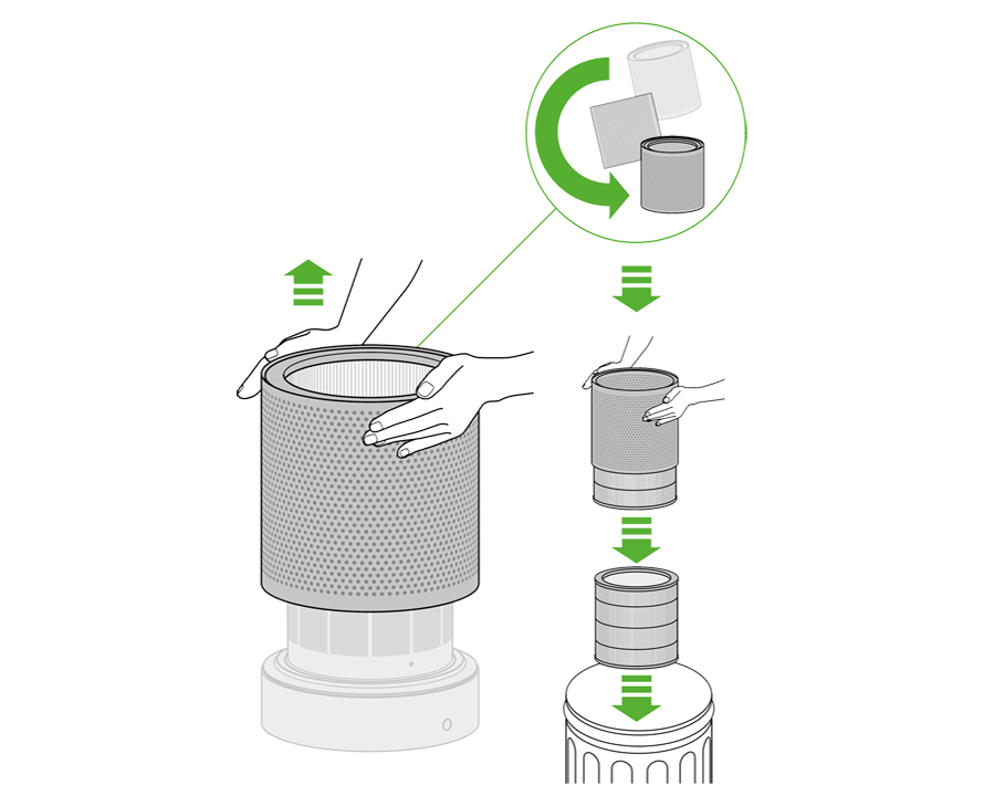 - Para reemplazar la unidad de filtro no lavable, sigue los siguientes pasos.